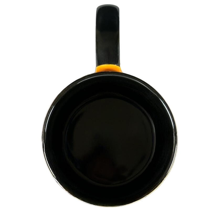 - There are some minor imperfections in the cream lower exterior band, and on the black areas of the handle and interior.