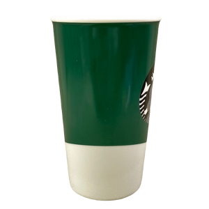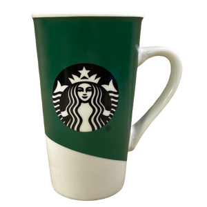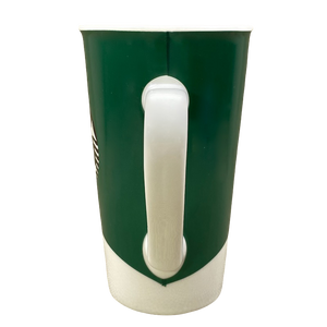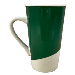 This mug is primarily green but the lower portion is cream with a matching cream handle and interior.