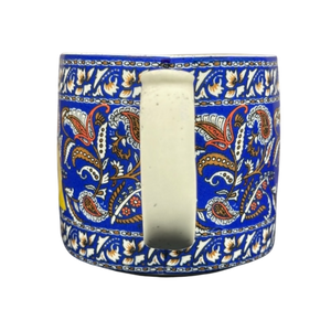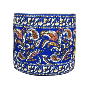 Features beautiful floral artwork wrapping around its exterior surface.