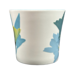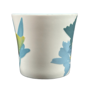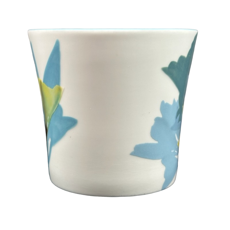 Features beautiful hand painted floral artwork wrapping around its exterior surface.