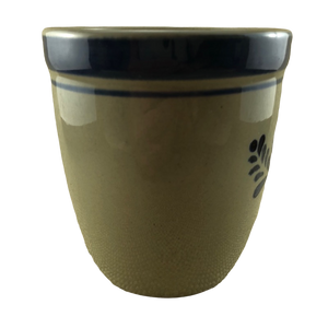 Also has a thick and a thin band of blue trim wrapping around its upper surface near the rim.