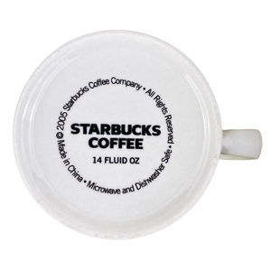 Also features "STARBUCKS" printed horizontally inside the green band on its front surface.