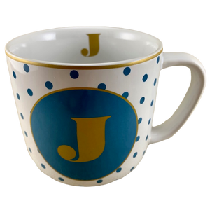 Has the letter "J" printed in a gold font on a blue circular background in the middle of the front surface.