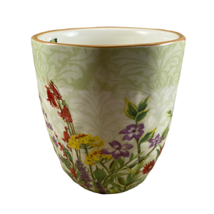 Features beautiful floral artwork wrapping around its exterior surface.