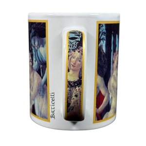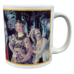 This beautiful mug features colorful artwork depicting the painting "Primavera" by Botticelli.