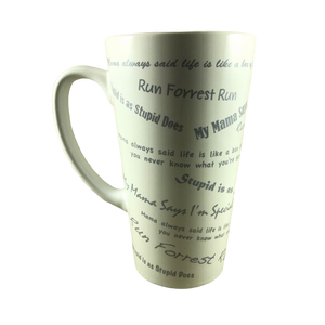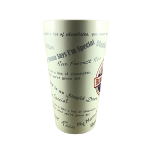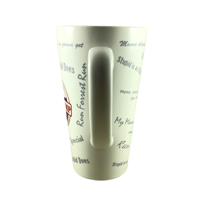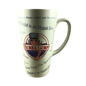 Features the Bubba Gump Shrimp Co logo on the front of the mug and quotes from the movie Forrest Gump all over the exterior surface of this mug.