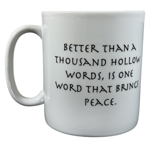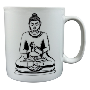 This is a jumbo mug that features an image of Buddha on its front surface.