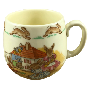 Wrapping around the upper surface near the rim is a repeating pattern of bunnies.