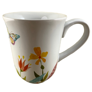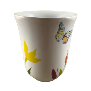 Features beautiful artwork wrapping around its exterior surface consisting of butterflies and flowers.