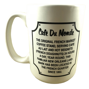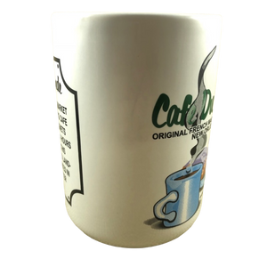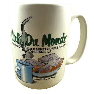 This is a rare taller mug with color artwork from Cafe Du Monde.