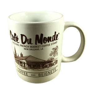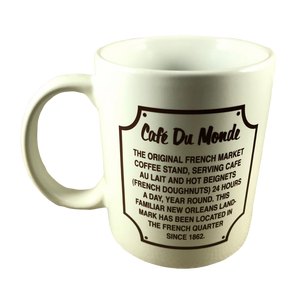 Benaath the image of the restaurant is pritned "COFFEE AND BEIGNETS"