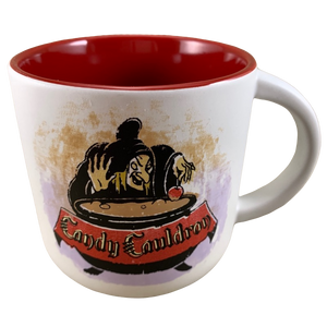 Features an image of the evil witch from Snow White standing over a cauldron.