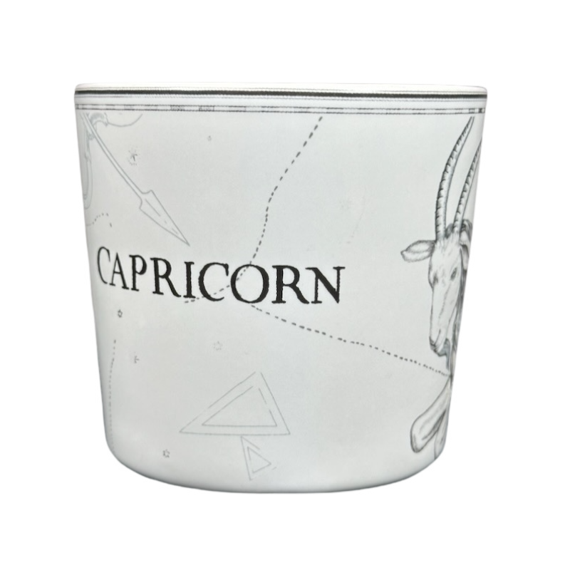 Features artwork wrapping around its exterior surface relating to the zodiac sign CAPRICORN.