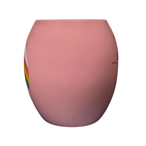 On the rear surface is a rainbow with a heart to its lower left.