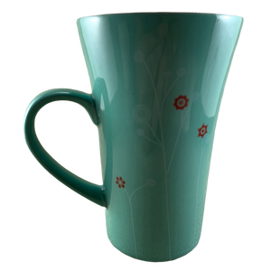 Features elegant subtle floral artwork wrapping around its exterior surface.