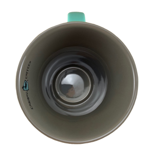 Inside on the rear upper surface is a Caribou Coffee logo.