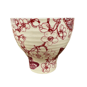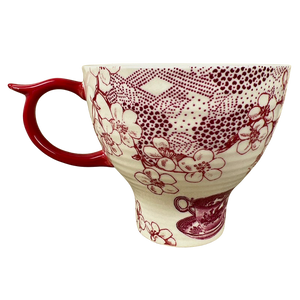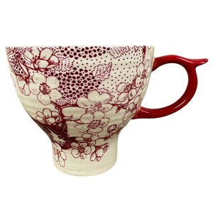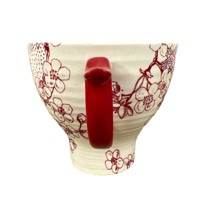 This is an oversized mug that features beautiful floral artwork wrapping around its exterior surface.