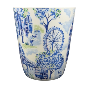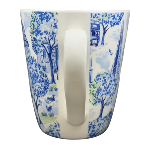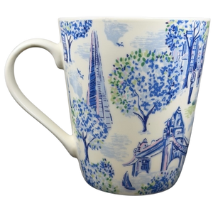 This Cath Kidston ceramic mug features a charming wraparound illustration of iconic London scenes rendered in soft blue and green tones, including classic landmarks, leafy trees, and whimsical city details that give it a storybook feel. The gently tapered shape, comfortable handle, and glossy cream interior make it ideal for everyday coffee or tea, while the detailed artwork adds a touch of British charm to your mug collection. Finished with a Cath Kidston backstamp noting microwave and dishwasher safe use, this mug is a lovely collectible or everyday piece for fans of London-inspired design and timeless illustrated ceramics.