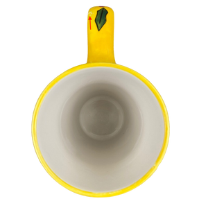 Also has a yellow decorated handle with leaves and holly.