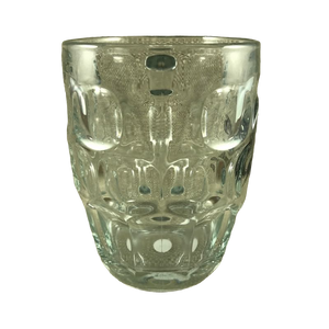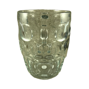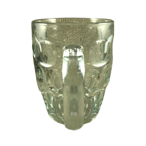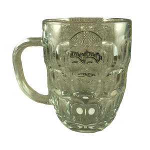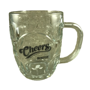 This is a dimpled glass mug with the "Cheers Boston" logo printed on the front surface in an area that is not dimpled.