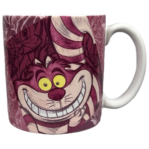 Wrapping around the rest of the exterior surface and surrounding Cheshire Cat are sketch images of other Disney characters.