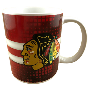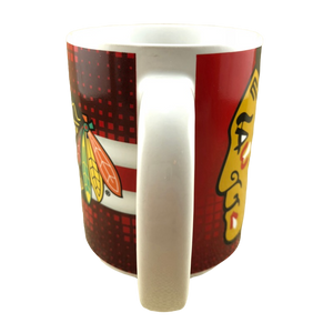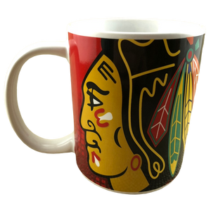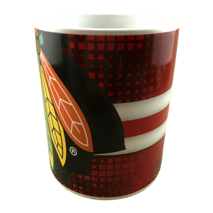Features the Chicago Blackhawks mascot on its front surface and a larger version of it on its rear surface.