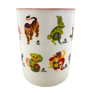 Features Chinese zodiac animals wrapping around its exterior surface.