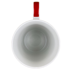 There is a thin band of red trim wrapping around the exterior surface just below the rim.
