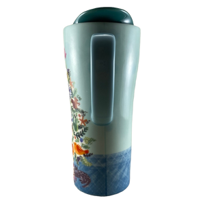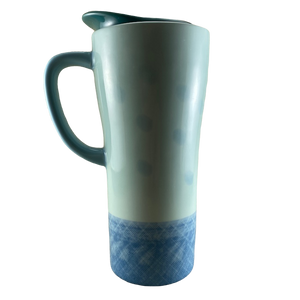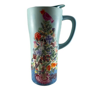 This is a much taller than average travel mug with a matching ceramic lid.