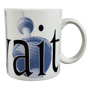 Has "Kuwait" printed in a large black font wrapping around its exterior surface.