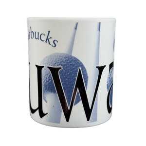 The Kuwait Towers are present on the exterior surface on the front and the side opposite the handle.