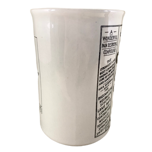 On the rear surface is an image of a man holding a chair and pouring what is presumably this liniment in his mouth.