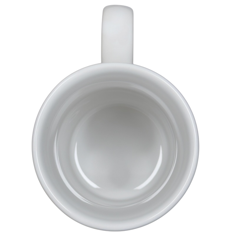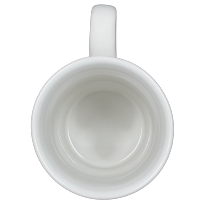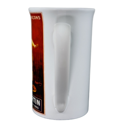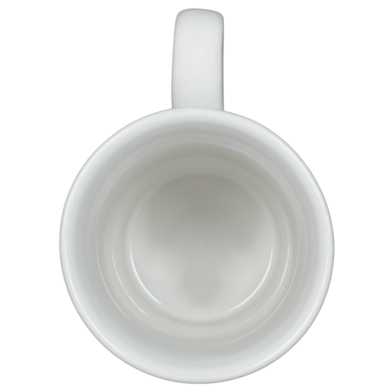 Copy 1: This mug appears unused with its original sticker still on its bottom surface. This mug has no chips, cracks, scratches, stains or crazing. There is a pinhole from the manufacturing process on the exterior surface just below and to the left of the handle. Please see the second photo. There is another pinhole from the manufacturing process on the bottom surface, please see the last photo. There is some creasing and wear on the sticker on the bottom surface, please see the last photo.