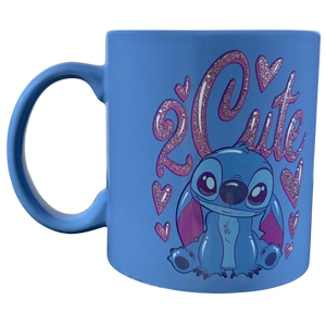 Printed above Stitch in a purple glitter font is "2 Cute."