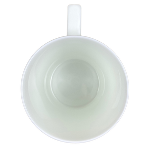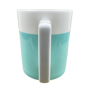 The top 1/3 of this mug, the handle, and the interior are finished in white.  The lower 2/3 of the exterior surface are finished in iconic Tiffany blue.