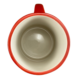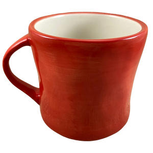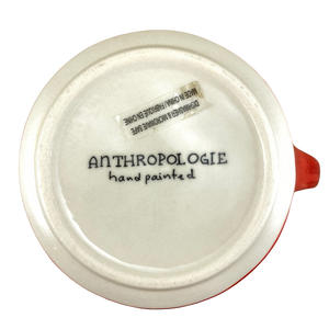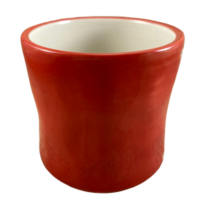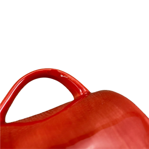 The remaining areas on the exterior surface and handle are hand painted in red.