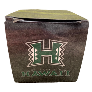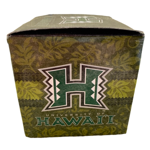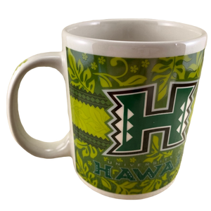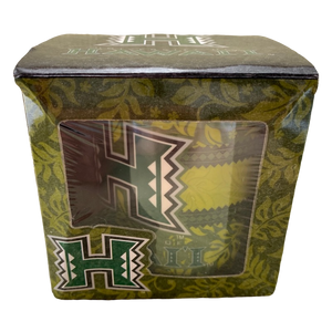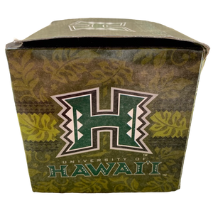 Features the same image on the front and rear consisting of a large green H with "UNIVERSITY OF HAWAII" printed beneath it.