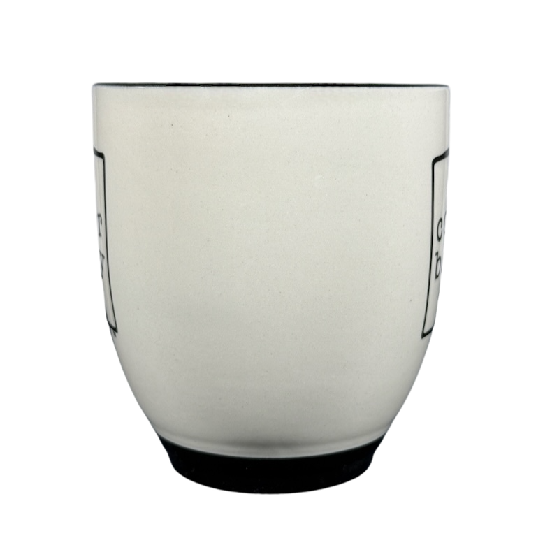 Features The same artwork on its front and rear surface consisting of a black square outlining the following text: