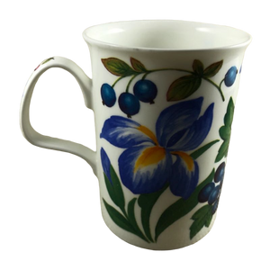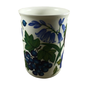 Features artwork depicting blueberries and flowers wrapping around its exterior surface.