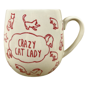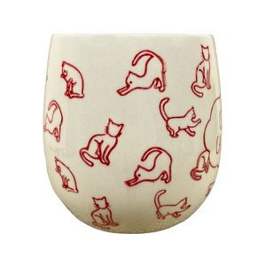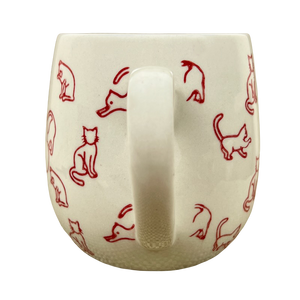 Features red outlined cats in various positions wrapping around its exterior surface.
