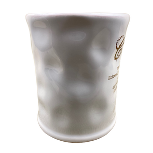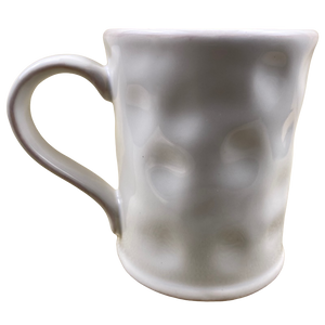 This mug features a unique dimpled texture on its interior and exterior surface.