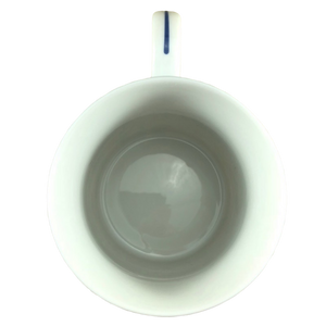 Also features a blue vertical stripe on the handle and matching trim around the rim.