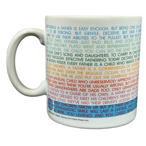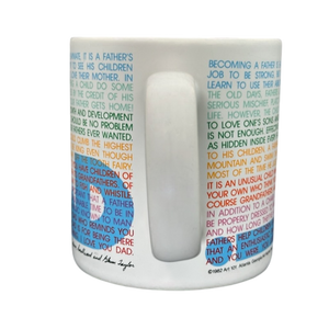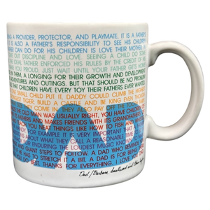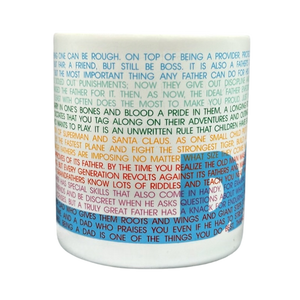 Features artwork wrapping around its exterior surface consisting of words and phrases having to do with being a dad.