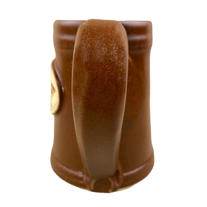 This mug features a raised plaque on its front surface with the following etched into it: