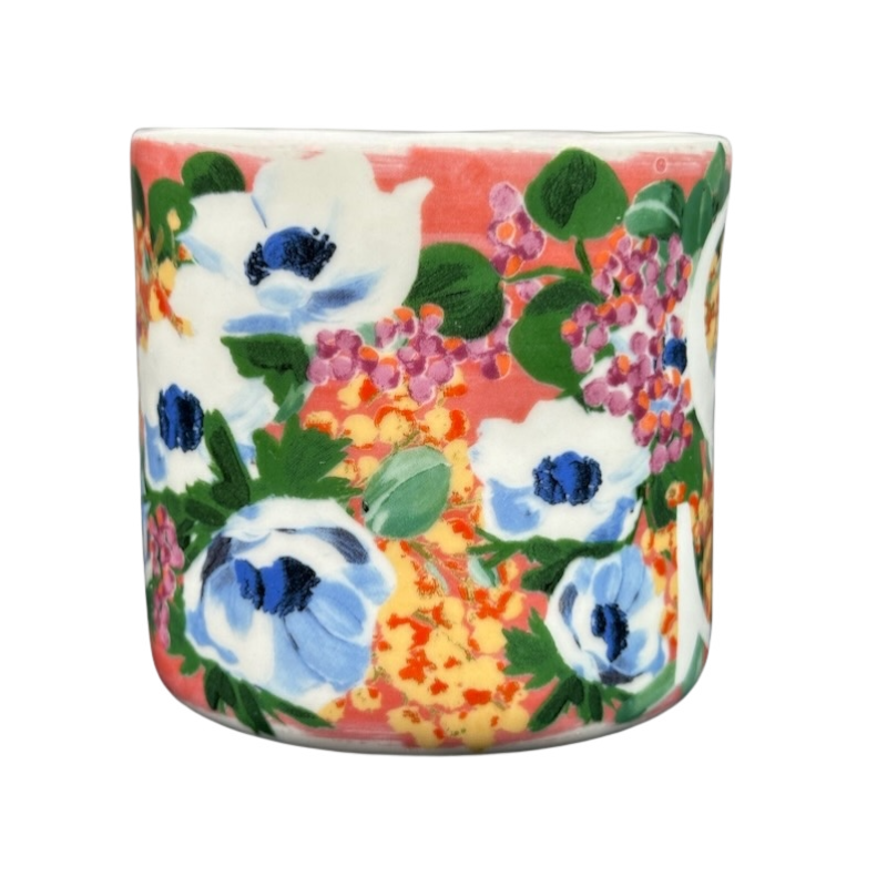 Features a beautiful floral pattern wrapping around its exterior surface.