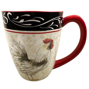 Features the same artwork on its front and rear surface depicting a rooster.