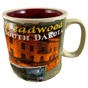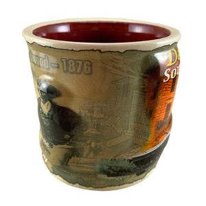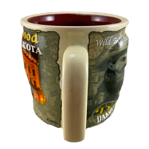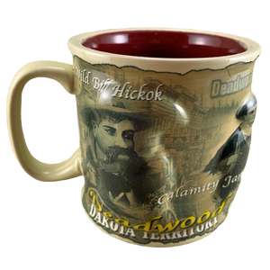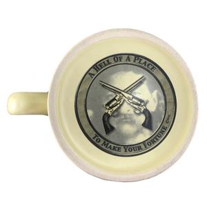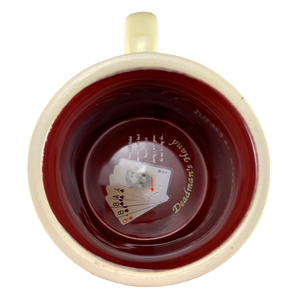Inside this mug on its bottom surface are 5 playing cards with an image of Wild Bill Hickok on the top most card. This set of cards represents the "Deadman's Hand."
