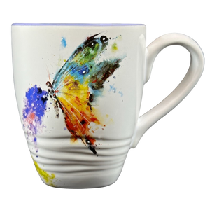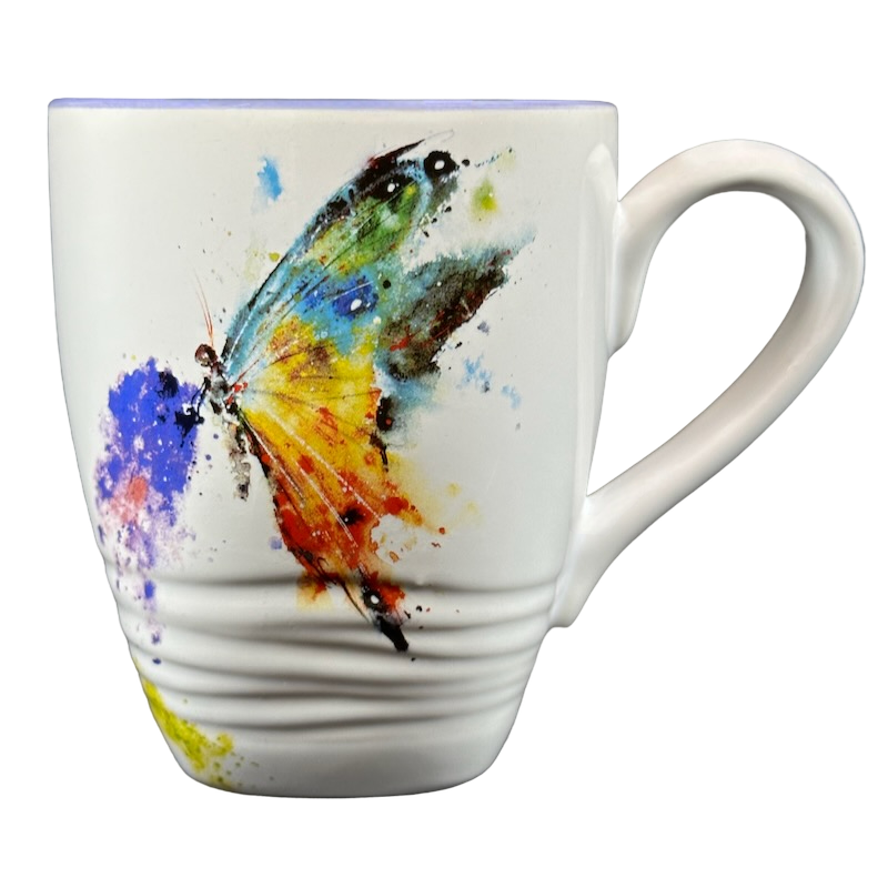 Features beautiful watercolor artwork of a butterfly on its front surface by artist Dean Crouser.