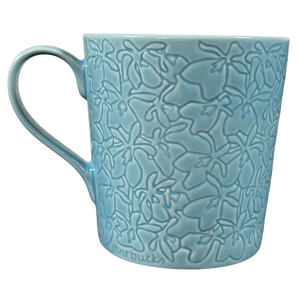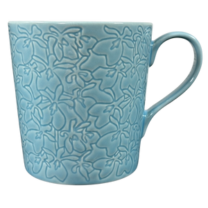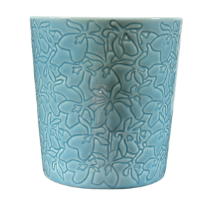 Features an embossed floral pattern that extends all the way around its exterior surface.