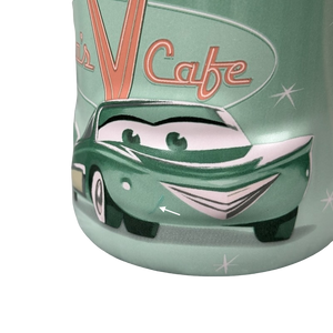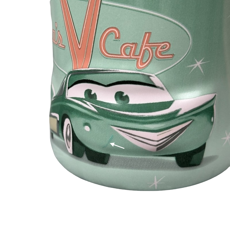Features an embossed image of Flo from Disney/Pixar's Cars on its front surface.